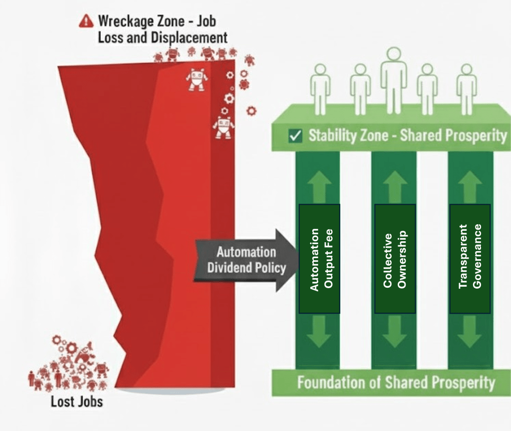 Governance – An independent Automation Trust overseen by multiple stakeholders—governments, civil-society groups, technologists, and labor representatives—prevents capture by any single interest.